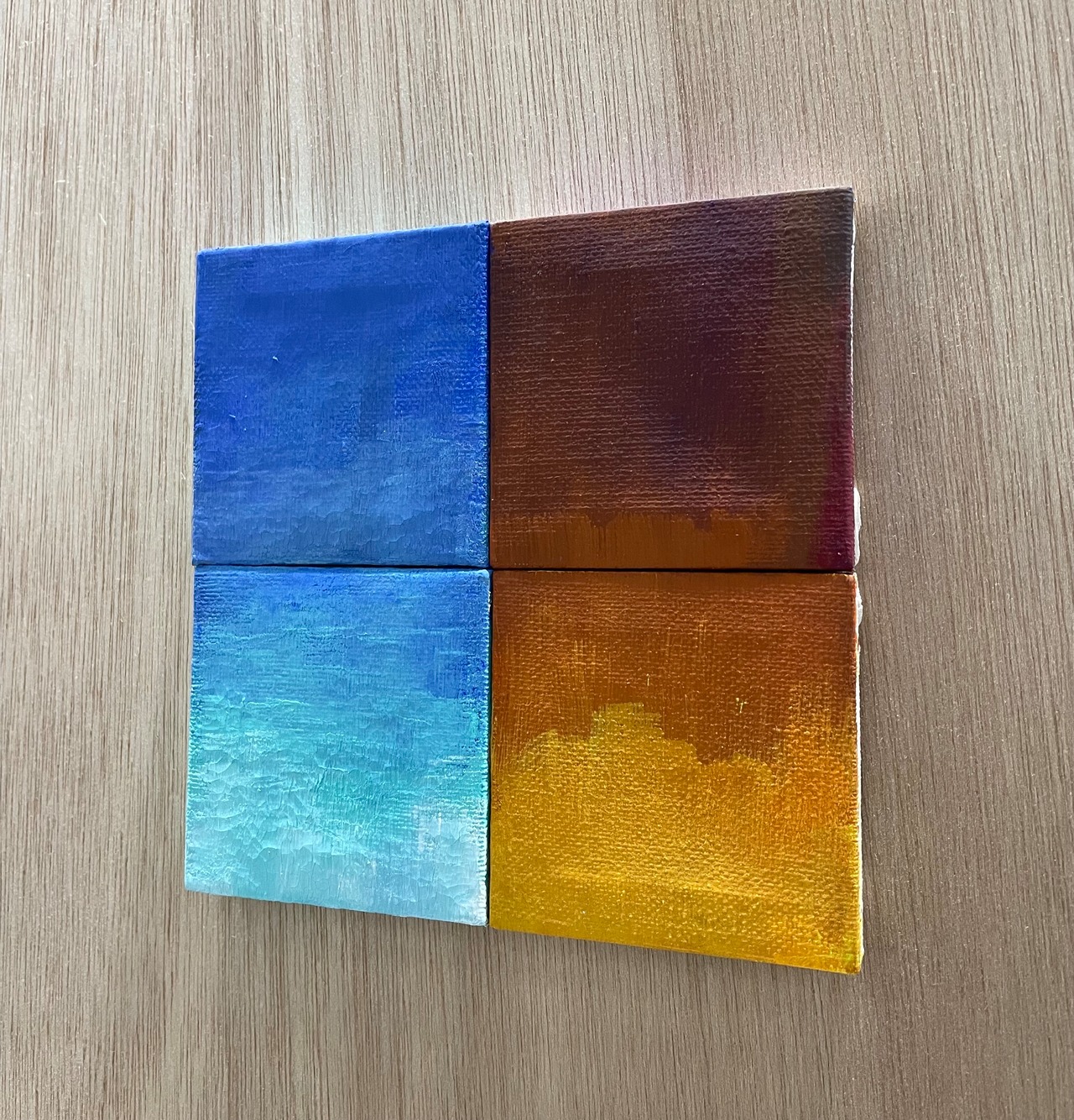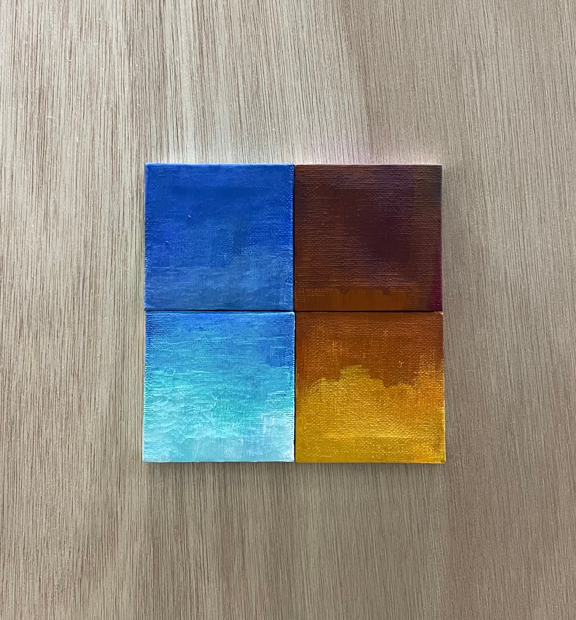 私が小さな頃に見た夕焼けと昼の海を、記憶の限りで描いたものです。写真のような精巧な海ではなく、小さな頃の記憶から導いた作品です。