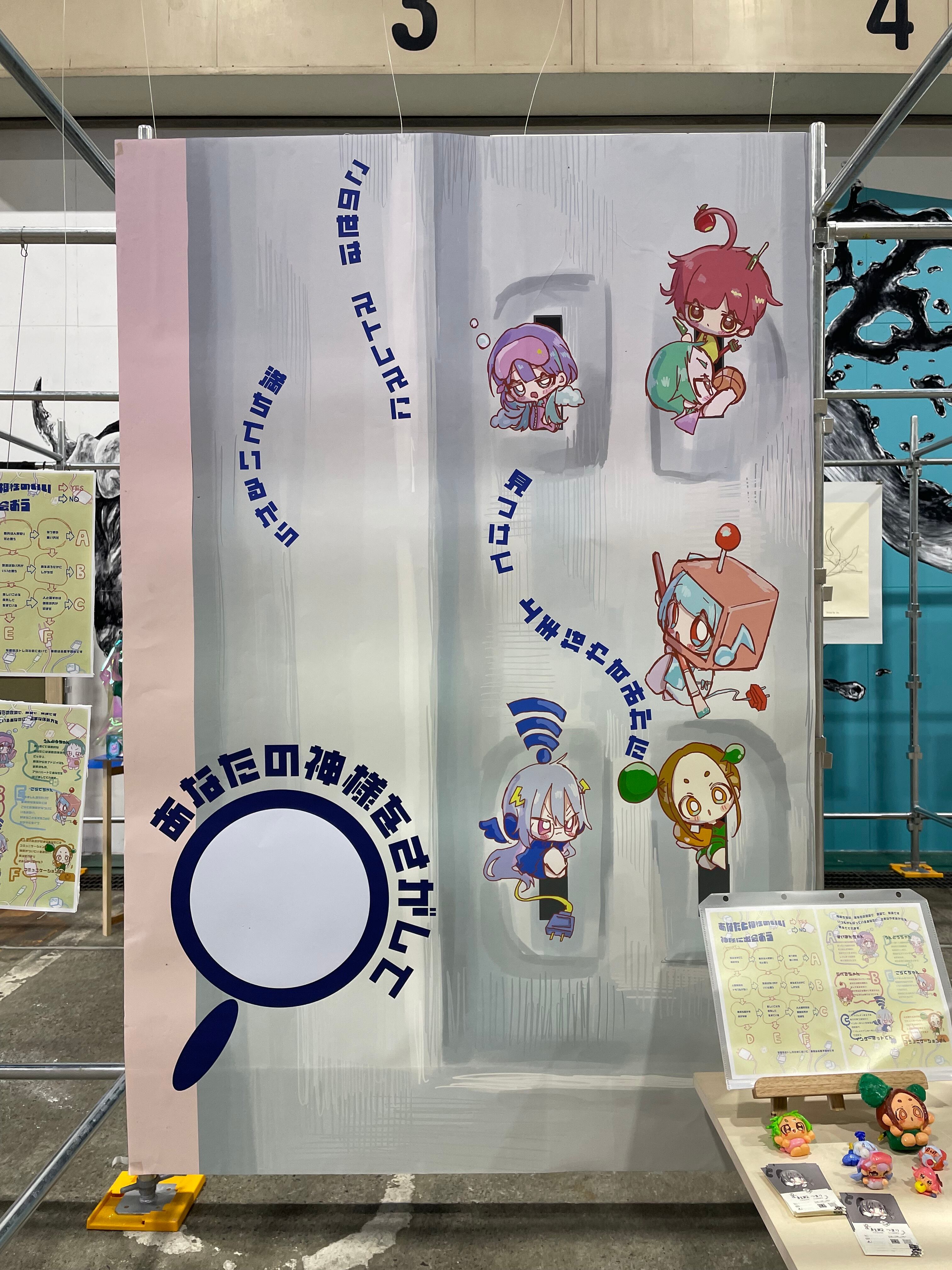 労働、人間関係、物価高…令和はストレスに溢れています。目まぐるしい毎日を共有できる小さな友人がいたらなあ、そんな思いをきっかけに、展示テーマ「コンセント」から着想を得て、他でもない「あなた」の心を充電する神様たちを作りました。小さな神様たちは、日常に隠れては私たちを見ています。
